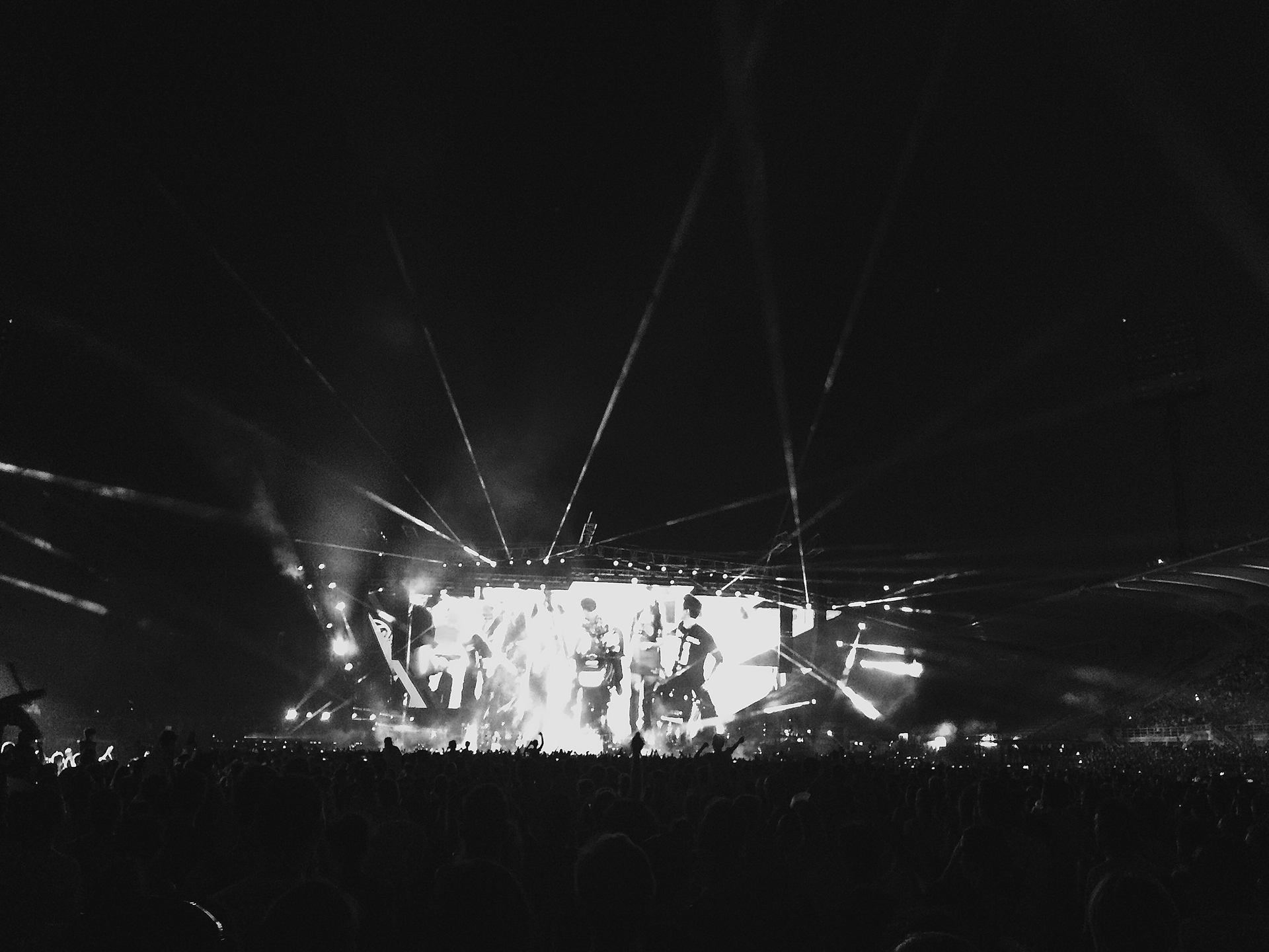 Dominée par le noir profond et une typographie massive, chaque support a été pensé comme une extension de la marque : affiches urbaines, signalétique, tote bag, pass backstage, drapeaux, merchandising textile.