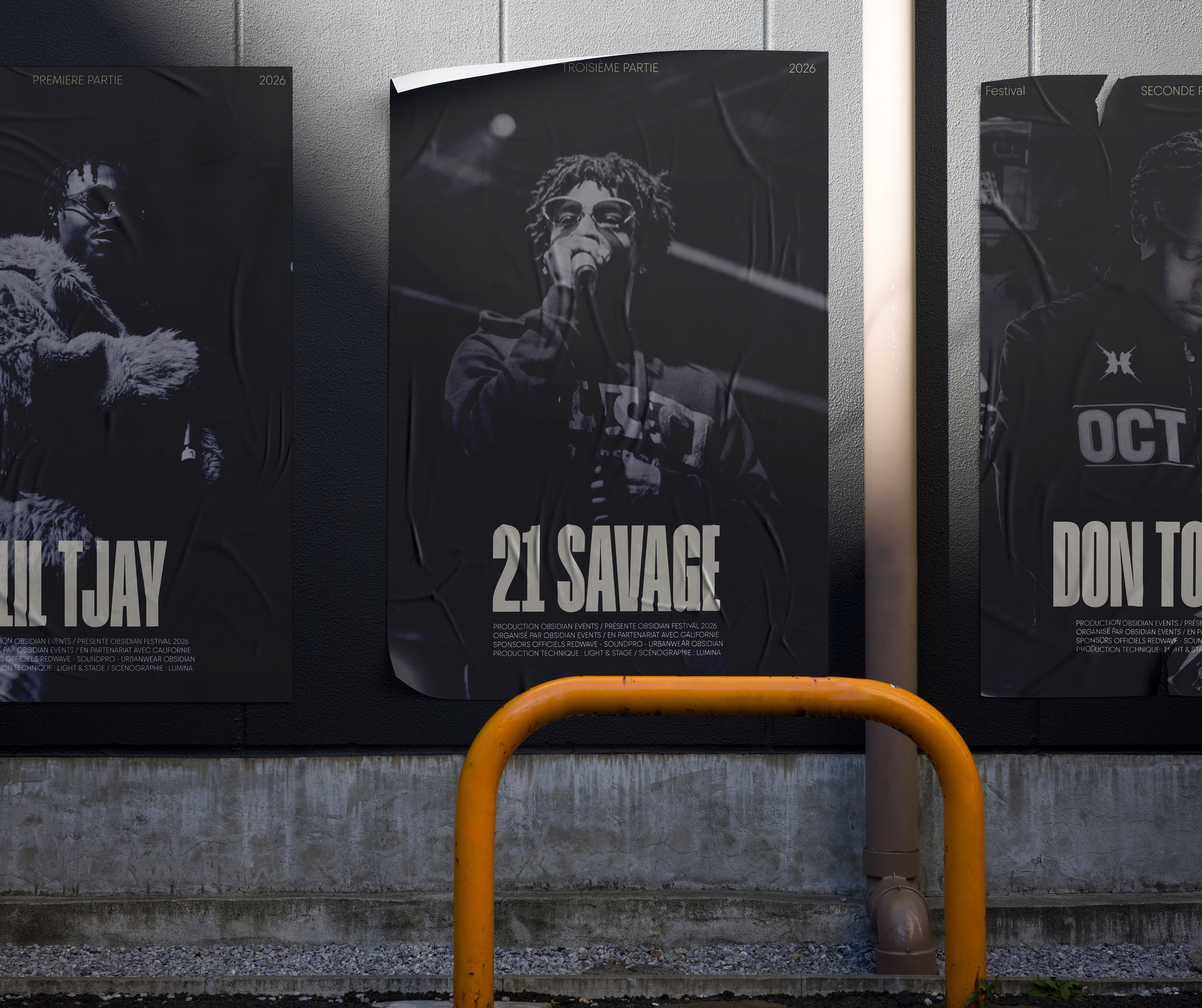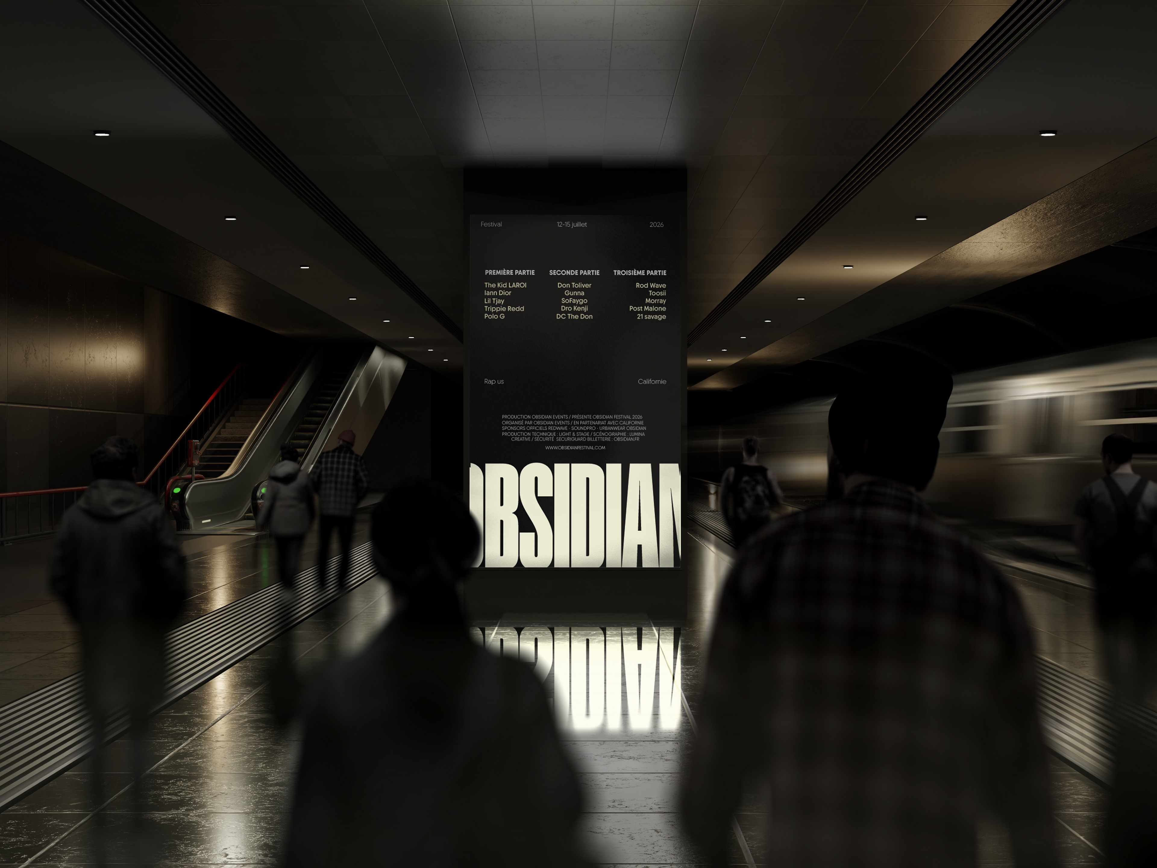OBSIDIAN est un concept de festival urbain imaginé autour d’une identité visuelle forte, minimaliste et immersive.
